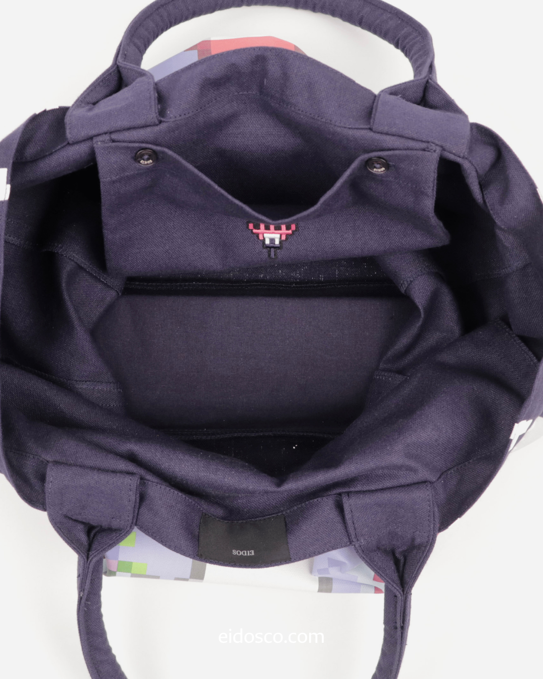 The Pixel Holiday Tote from the Pixel Vaagai Collection blends style and sustainability. Made in collaboration with Bags of Ethics, this eco-friendly tote features vibrant pixel art of a lighthouse with festive accents. Crafted from sustainable materials, it includes functional pockets with custom EIDOS-branded buttons for added charm. Spacious, durable, and ethically made, this bag is perfect for everyday use while celebrating creativity and conscious design.